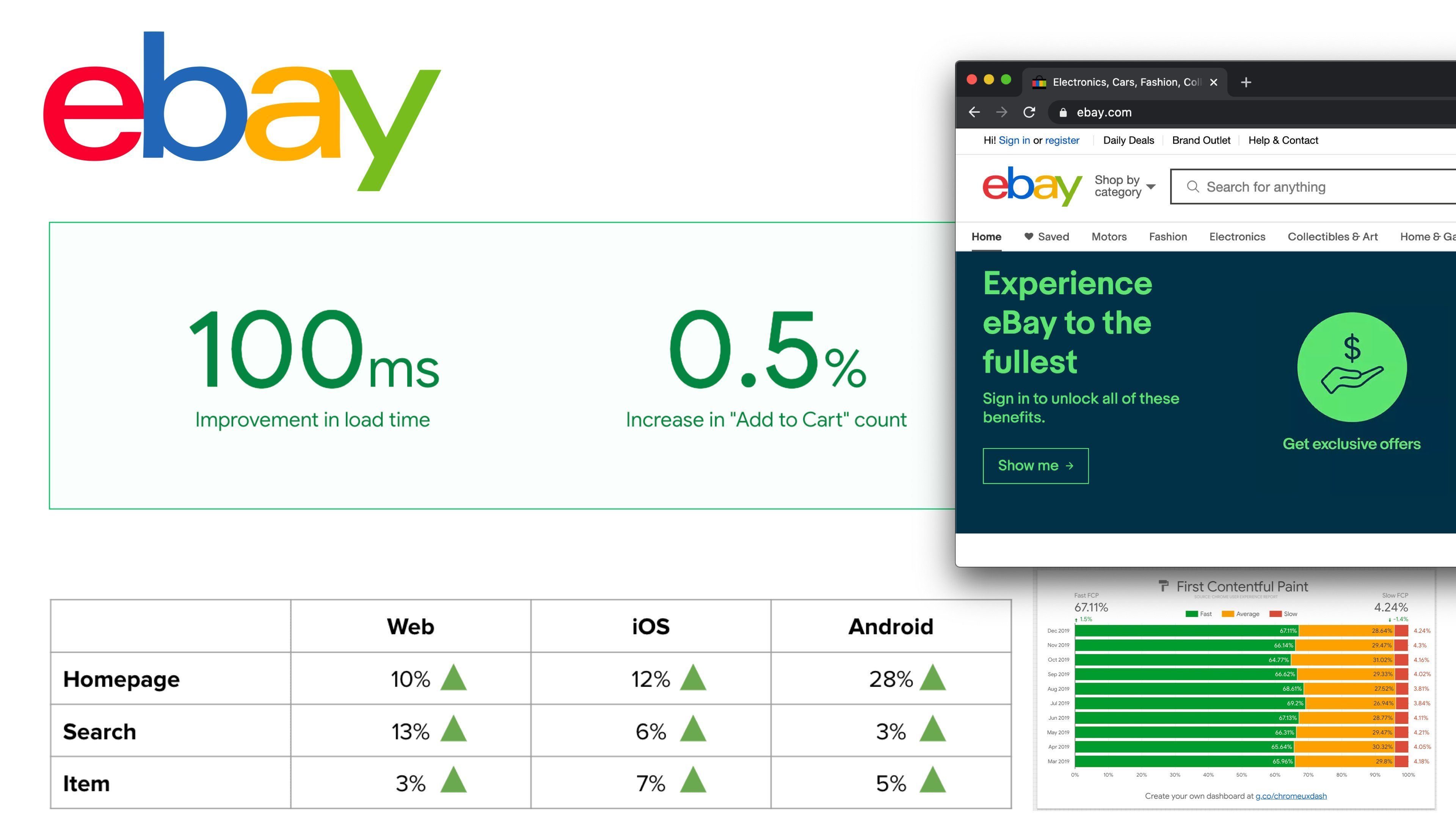 eBay had a big year of performance optimization: http://bit.ly/ebayspeed ~ smaller payloads, smart prefetching & edge-caching had an impact. For every 100ms improvement in search page loading time, they saw a 0.5% increase in Add to Cart count! ⚡️